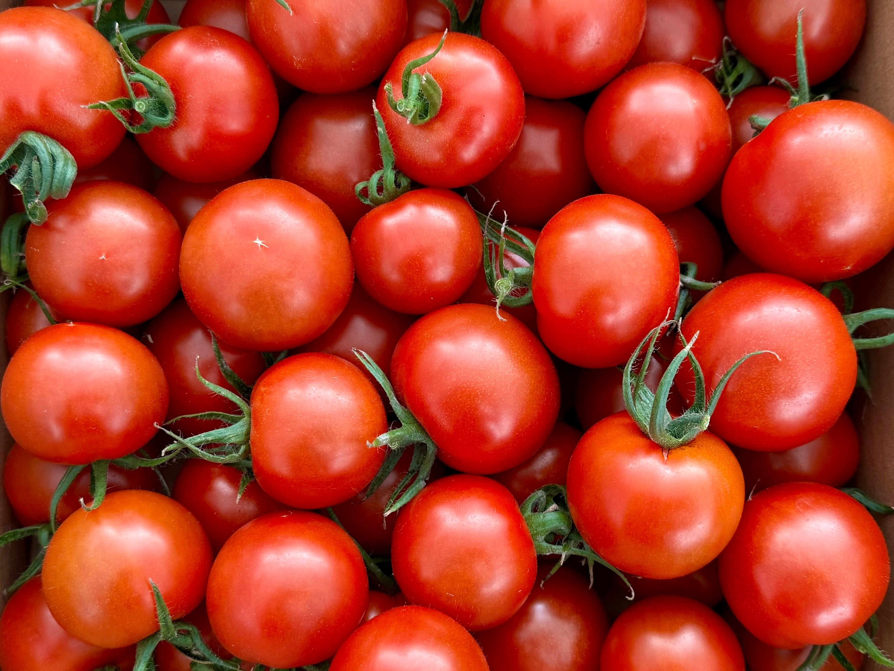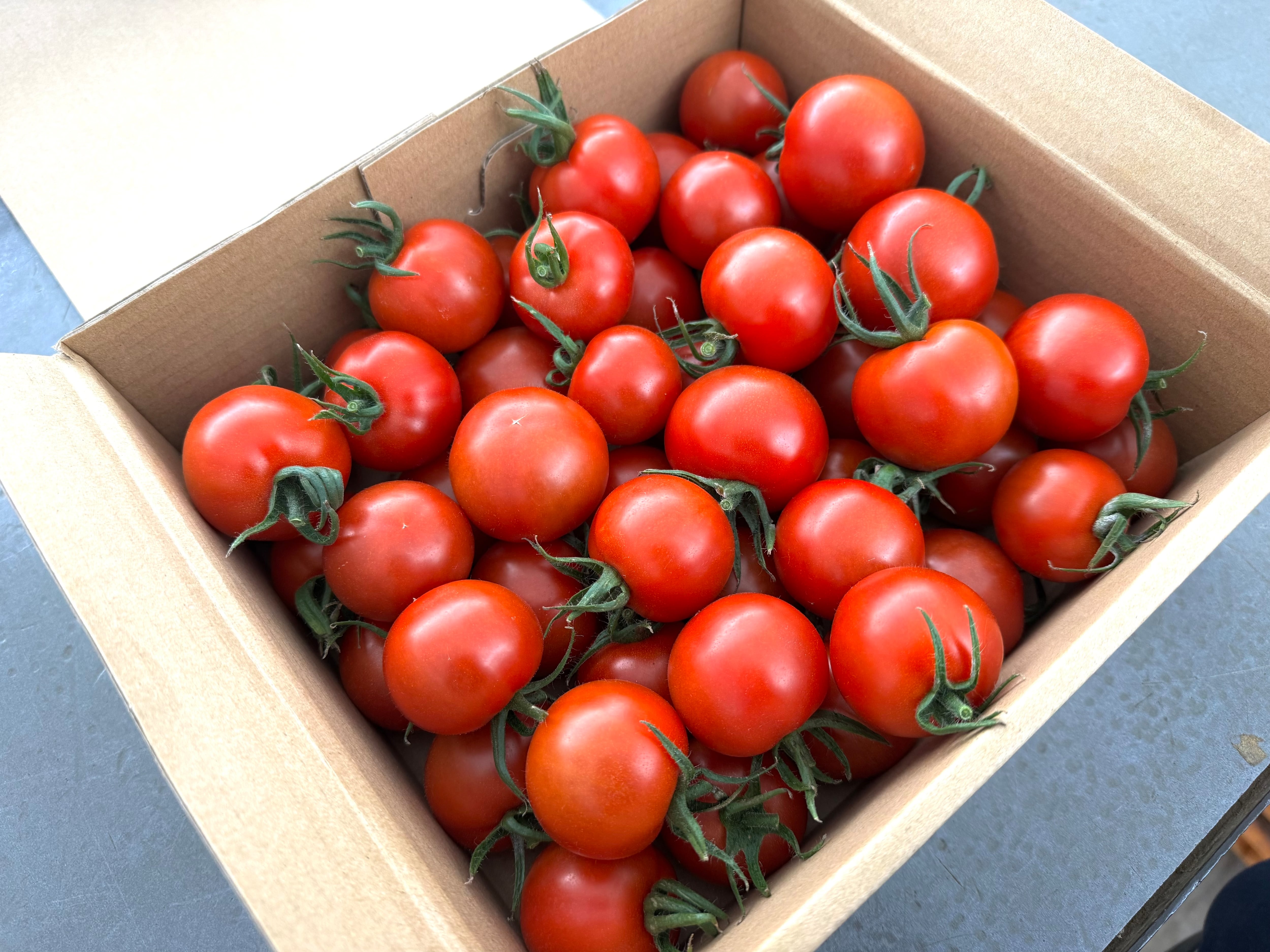中玉トマトの大容量ボックス。 ご自宅で、たくさん食べたい方にぴったりです。 1.8kg入り(300gパック6個分) ※小分けの袋はついてきません。
